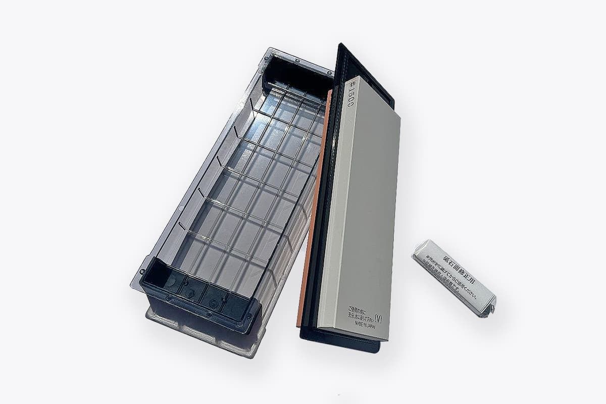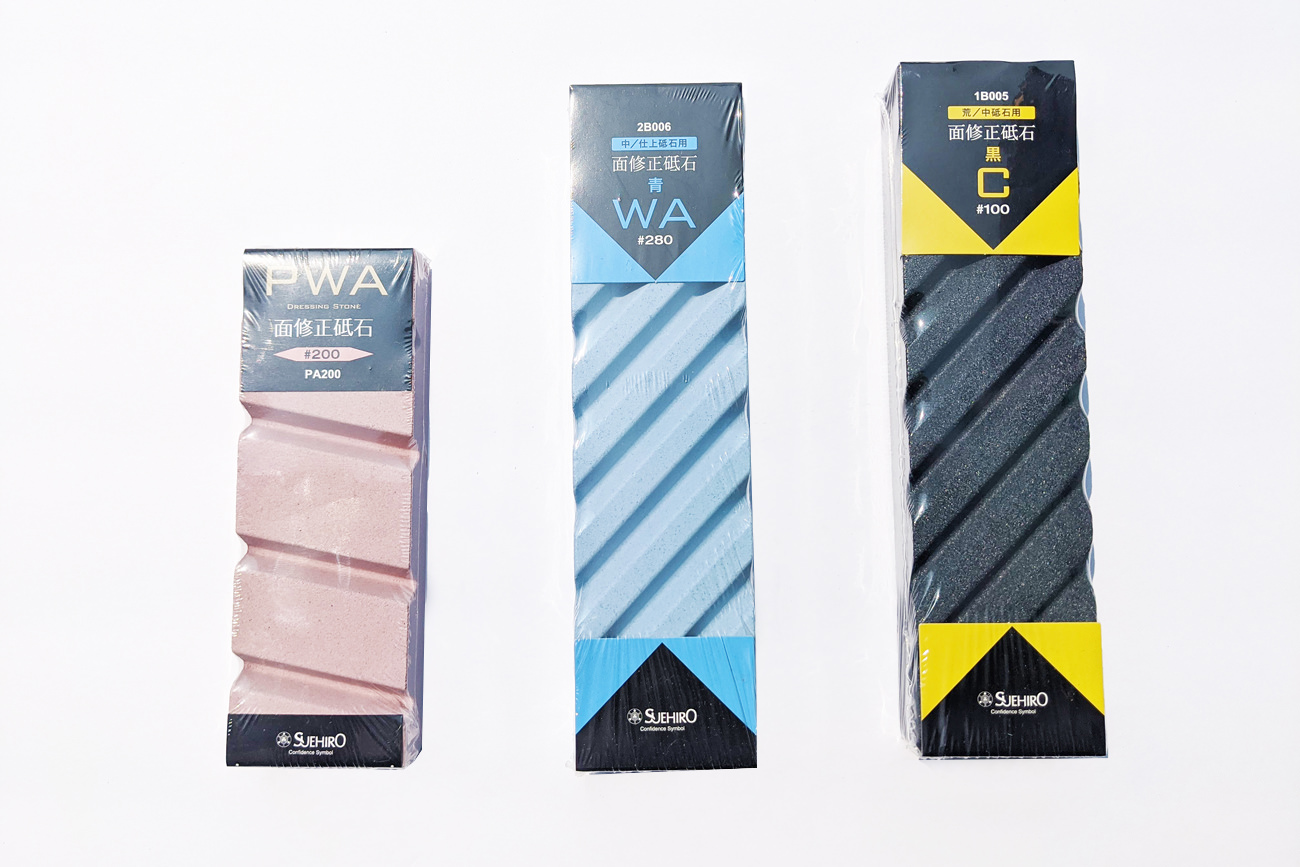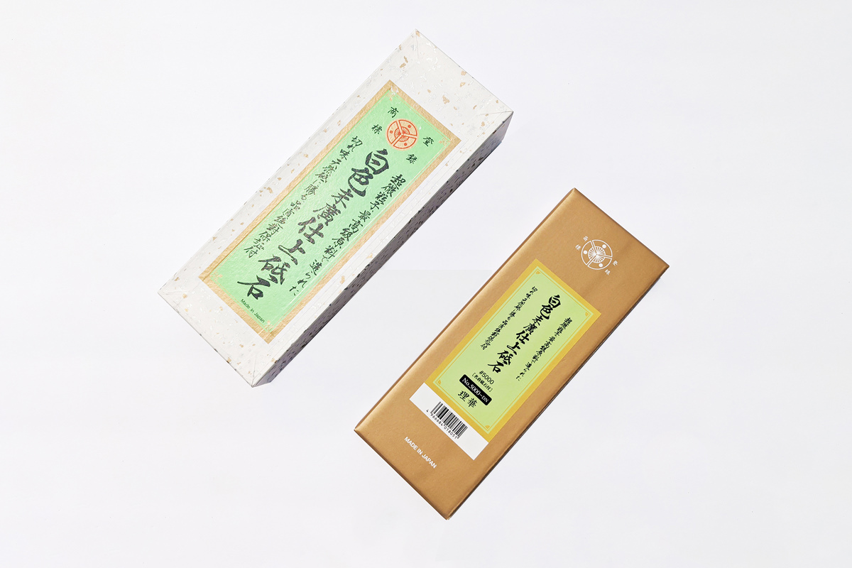 Both version comes with cleaning Nagura stone, this stone needs soaking prior use.